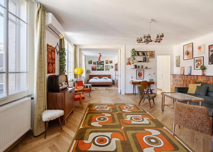 Az apartman a VII. körzetben helyezkedik el, a Nagycsarnoktól körülbelül egy 25 perces sétára. A turisták közelében találják a Magyar Nemzeti Múzeumot az apartmantól. A Gozsdu-udvar továbbá csupán 250 méterre helyezkedik el a szálláshelytől.